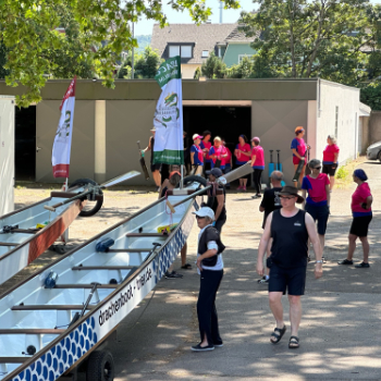 Sehr zahlreich war die Drachenbootabteilug vertreten, die sportlich schnell zwei Drachenboote zu Wasser brachte und lospaddelte. Nachdem die Rudernden die zur Taufe verwendeten Sektflaschen geleert hatten, konnte dann auch der Achter Augusta mit Abteilungsleiter Nils Bock am Steuer und weitere Ruderboote das sportliche Programm des frühen Nachmittags vervollständigen.