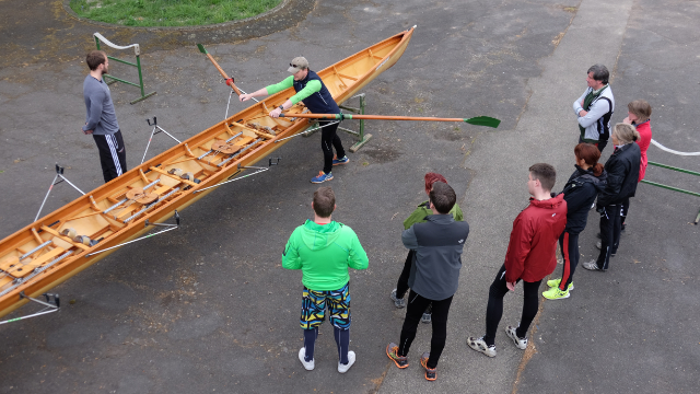 Vorbesprechung; erste Ruderversuche auf Boot und Ergometer |